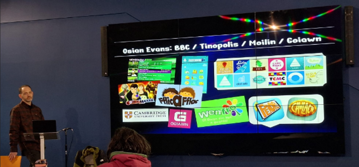 The final speaker, Osian Evans, shared insights from Antur Amser, an ambitious educational entertainment project that follows a group of children from the year 2174 who travel back to different eras in Earth’s history. The characters act as a creative gateway into subjects such as science, history, and geography, blending classroom learning with storytelling and interactive media.