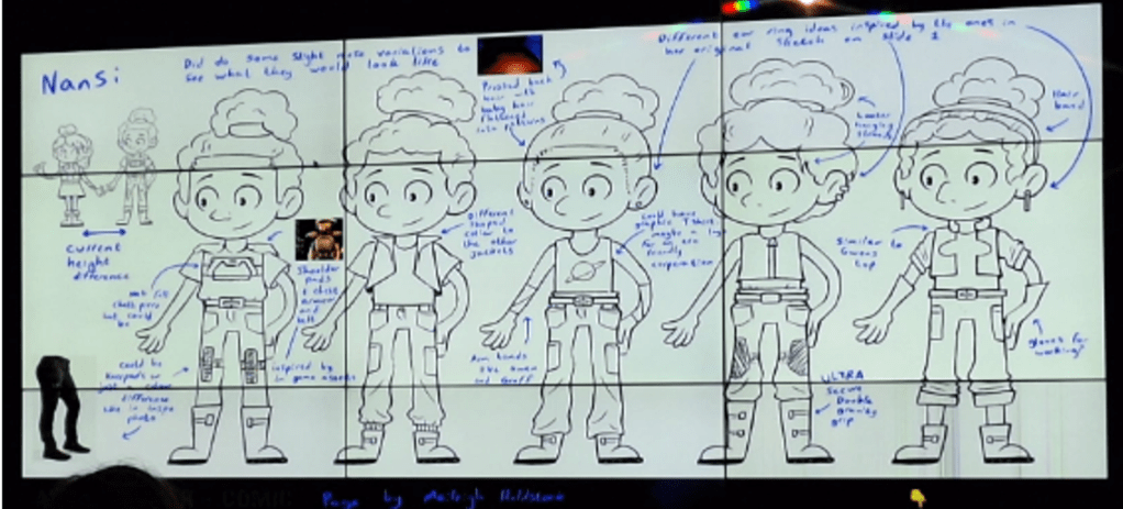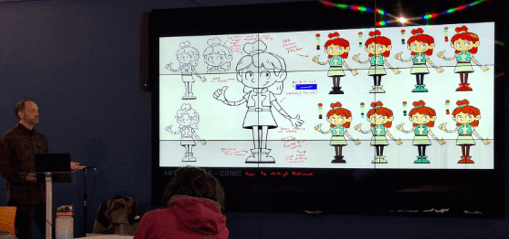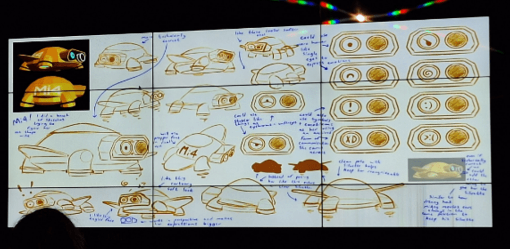 Osian explained the iterative design process behind the characters and emphasised the importance of giving animators precise instructions—highlighted by the time a “robot with anti‑gravity technology” accidentally ended up flapping wings because directions were unclear.