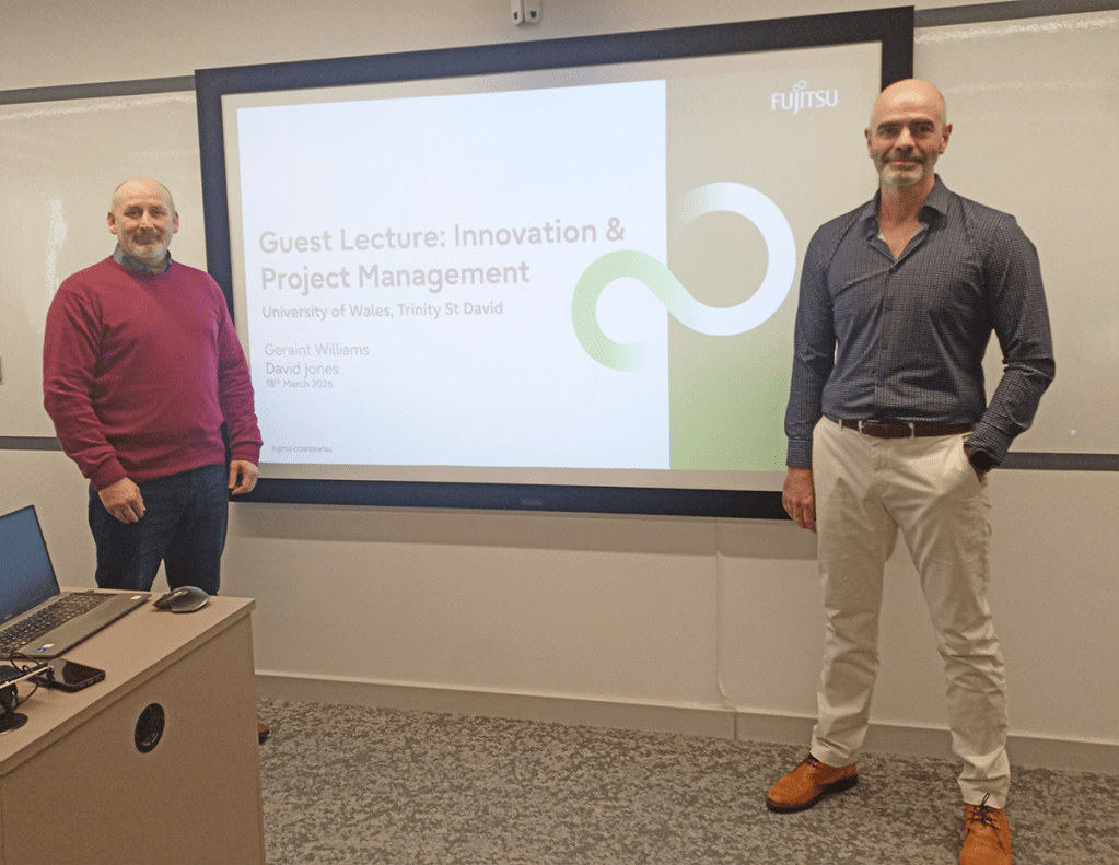 Many thanks to our industry partners from Fujitsu ‘David Jones‘ (Principal Consultant) and Geraint Williams (Director of Mission Control) for visiting the University again to speak with our students and share their valuable knowledge, skills, experience and insights.