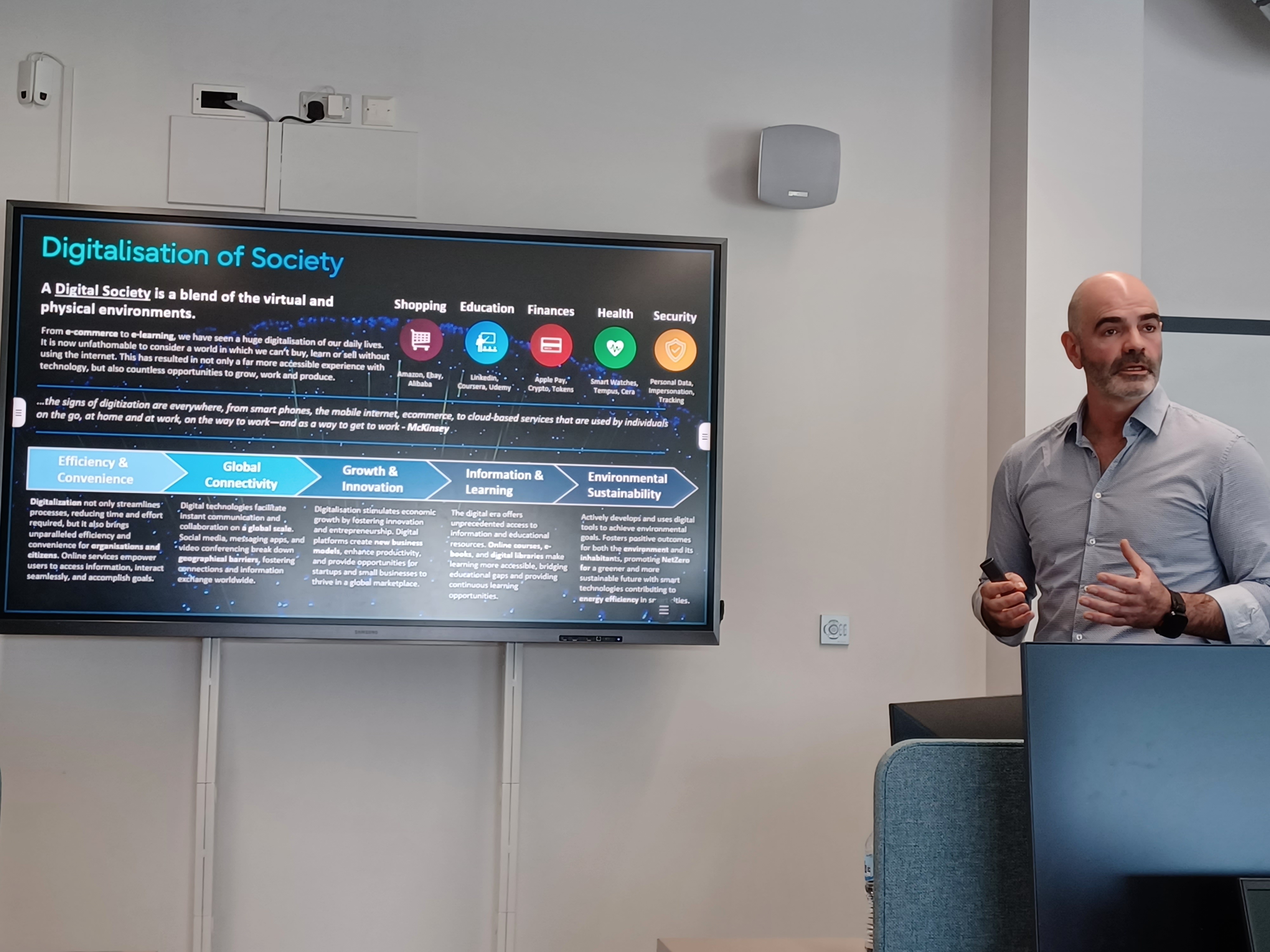 David went on to explain that the Digital Trends talk explored the ongoing digital transformation shaping society, business, and daily life. And that it’s purpose is to inform and inspire audiences about the profound impact of digitalisation, the benefits and challenges it brings, and the emerging trends that will define the future.